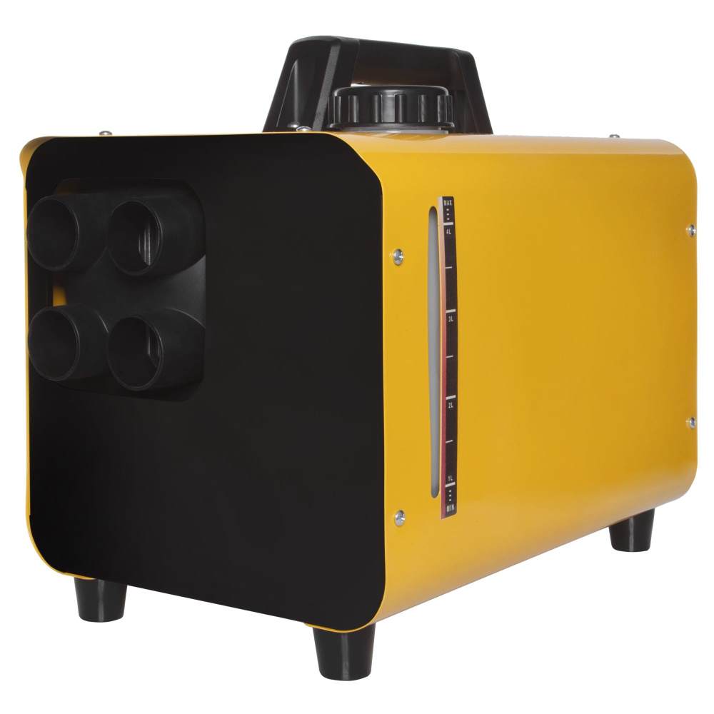 Тепловая дизельная пушка непрямого нагрева Ballu BHDN-5 серии Tundra – это автономный переносной дизельный обогреватель, применяемый для обогрева жилых, строительных и подсобных помещений (палаток, гаражей, бытовок) либо для локального прогрева отдельных зон, а также в грузоперевозках. Воздух из помещения при помощи вентилятора, расположенного с тыльной пушки, втягивается внутрь корпуса и, частично попадая в горелку теплообменника, который является камерой сгорания, смешивается с распылённым дизельным топливом, образуя воздушно-топливную смесь, которая автоматически поджигается. Нагретый воздух вместе с продуктами сгорания, пройдя через теплообменник, выбрасывается наружу из дымохода, расположенного в боковой части корпуса пушки. Весь остальной объём воздуха, обтекая теплообменник, нагревается и выбрасывается в обогреваемое помещение с помощью 4-х воздуховодов для разнонаправленного локального обогрева, не смешиваясь с продуктами сгорания. Полная комплектация позволяет сразу подготовить пушку к работе, остает