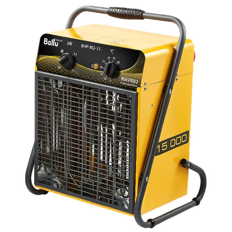 Электрические тепловые пушки BALLU серии Master 2 – новая флагманская серия профессиональных тепловентиляторов для общего обогрева помещений при ремонте, отделочных работах, на стройках и других объектах, где есть потребность в автономном источнике отопления.Тепловентиляторы данной серии могут работать в режиме «без нагрева», в качестве переносных вентиляторов. Новая панель управления со световой индикацией показывает активный режим нагрева. Тепловентиляторы серии Master 2 имеют повышенную степень пылевлагозащиты IP24, что позволяет использовать приборы во влажных помещениях и на открытых площадках без навеса.В приборах серии применяются электрические компоненты с большим ресурсом работы, высокоточный капиллярный терморегулятор и защитный термостат с функцией блокировки автоматического включения в случае перегрева. Тепловентиляторы Master 2 предназначены для непрерывной работы 24/7 в самых суровых условиях эксплуатации, даже при отрицательных температурах до -30°С. Новая опора-трансформер с увеличенным «дорож