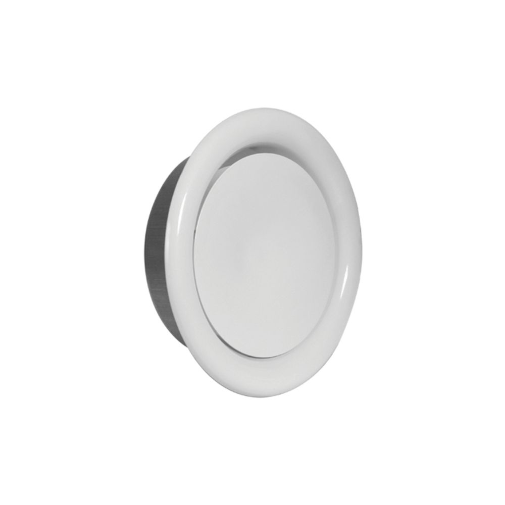 Изготовлен из высококачественной стали с последующей порошковой окраской в цвет «кристально-белый» (RAL 9016). Финишное покрытие — глянцевое, что придает изделию эстетичный и современный вид. Диффузор оснащен центральным диском, позволяющим регулировать расход воздуха путем его вращения.