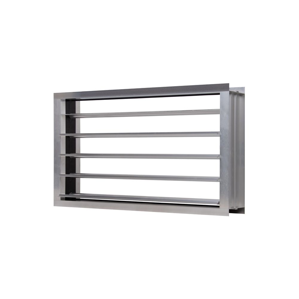Корпус клапана изготовлен из алюминиевого профиля, что обеспечивает легкость конструкции и высокую устойчивость к коррозии. Внутри установлены створчатые лопатки, смонтированные на подшипниках скольжения, которые под воздействием воздушного потока инерционно открываются, минимизируя сопротивление движению воздуха. Смещённая ось вращения створок обеспечивает плавное и эффективное открытие клапана, а при отсутствии потока лопатки герметично закрываются, препятствуя обратному движению воздуха.