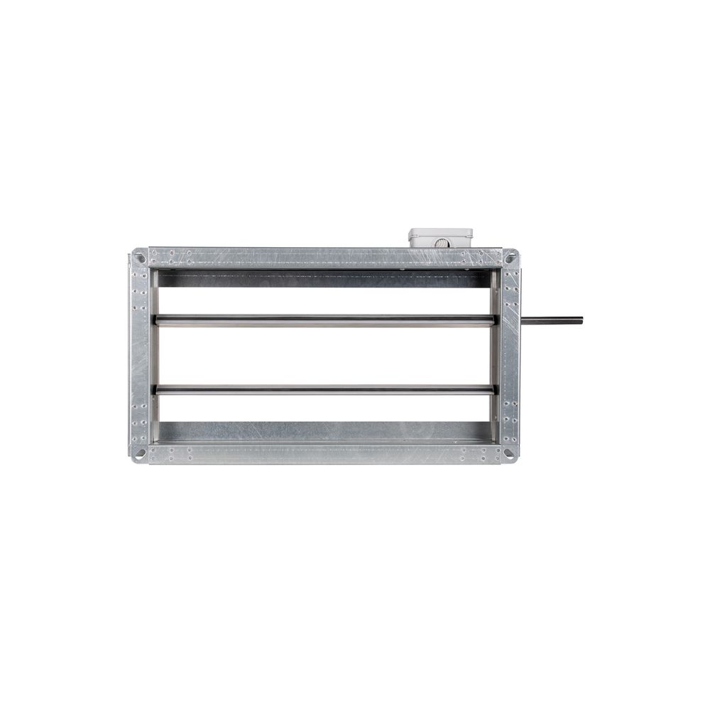 Корпус клапана выполнен из оцинкованной стали, что обеспечивает высокую устойчивость к коррозии и долговечность даже при эксплуатации в условиях повышенной влажности и перепадов температуры. Внутренние поворотные створчатые лопатки изготовлены из усиленного алюминиевого профиля и приводятся в движение системой кинематики рычагов и тяг. Параллельное открытие створок гарантирует равномерное распределение воздуха и снижает уровень шума при работе вентиляции.