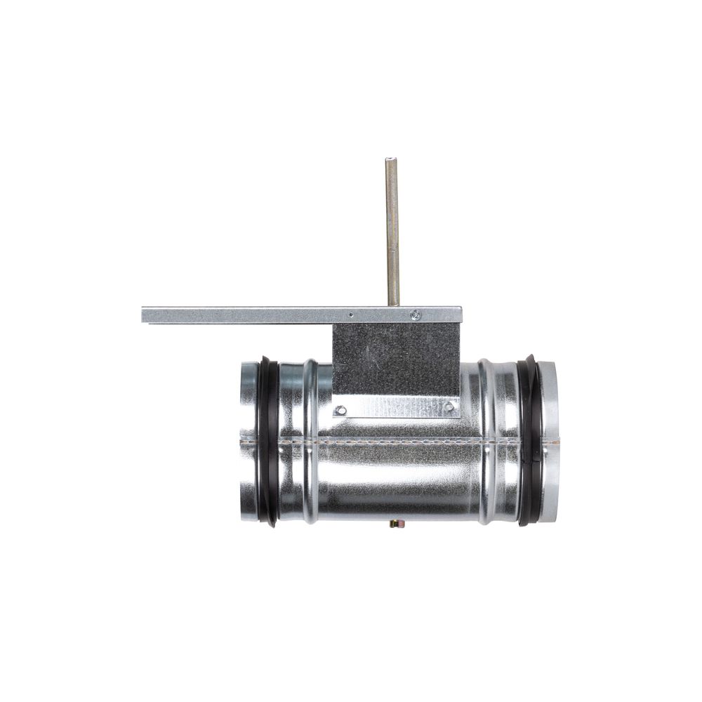 Корпус клапана и заслонка выполнены из оцинкованной стали, что обеспечивает прочность и устойчивость к коррозии. Запорные лопатки оснащены резиновыми уплотнителями, повышающими герметичность при закрытии. Лопатка закреплена на квадратном валу, что обеспечивает надежную фиксацию и передачу вращающего момента.
