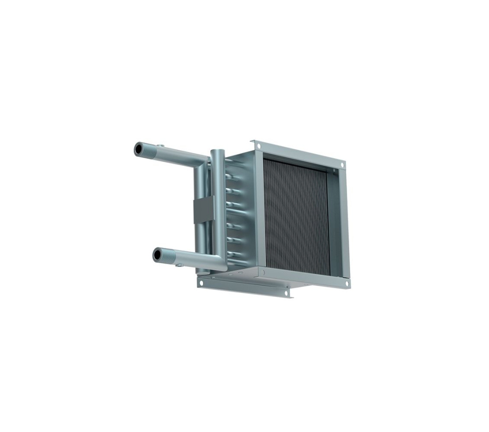 Модель WHC 400×400-2 предназначена для подогрева воздуха в канальных системах вентиляции сечением 400×400 мм. Двухрядный теплообменник из медных труб с алюминиевыми ребрами, спаянный серебросодержащим припоем, обеспечивает высокую теплоотдачу и долговечность. Корпус выполнен из оцинкованной стали, что придает устройству прочность и устойчивость к коррозии. Максимальная рабочая температура теплоносителя составляет 150 °C, а давление — до 16 бар. Испытан на герметичность при давлении 24 бар. Мощность нагревателя достигает 28 кВт, а производительность — до 1600 м³/ч. Температура воздуха на выходе может достигать 21,6 °C при температуре на входе -30 °C и расходе воздуха 800 м³/ч. Для подключения к системе используются стандартные фланцы, подходящие для круглых и прямоугольных каналов.