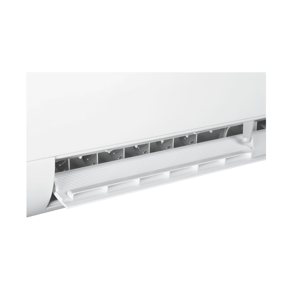 Встроенный Wi-Fi модуль позволяет управлять кондиционером удалённо через мобильное приложение, а поддержка голосового управления делает эксплуатацию ещё удобнее. Воздушный поток формируется по технологии Spiral Air, что обеспечивает равномерное распределение температуры и избегает прямого воздействия на человека. Длина воздушной струи достигает 12м, а система управления горизонтальными и вертикальными жалюзи (3D Airflow) позволяет идеально настроить направление потока. Пятиступенчатый вентилятор внутреннего блока обеспечивает гибкую регулировку интенсивности воздухообмена.