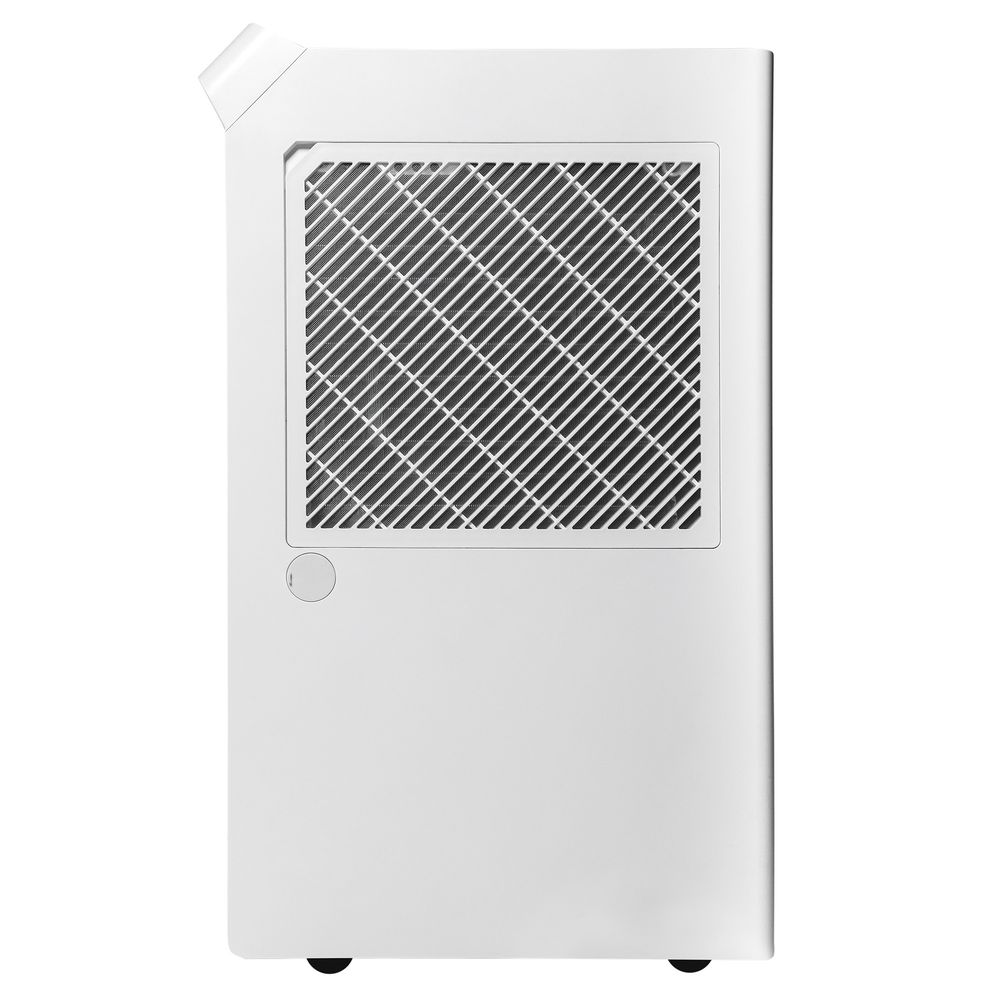 Корпус осушителя выполнен из прочного пластика белого цвета и имеет компактные размеры 366×220×613 мм при весе 15 кг. Он оснащён роликами, что облегчает его перемещение по помещению. Рабочий диапазон температур устройства составляет от +5 до +38 °C, что делает его универсальным для использования в различных климатических условиях.