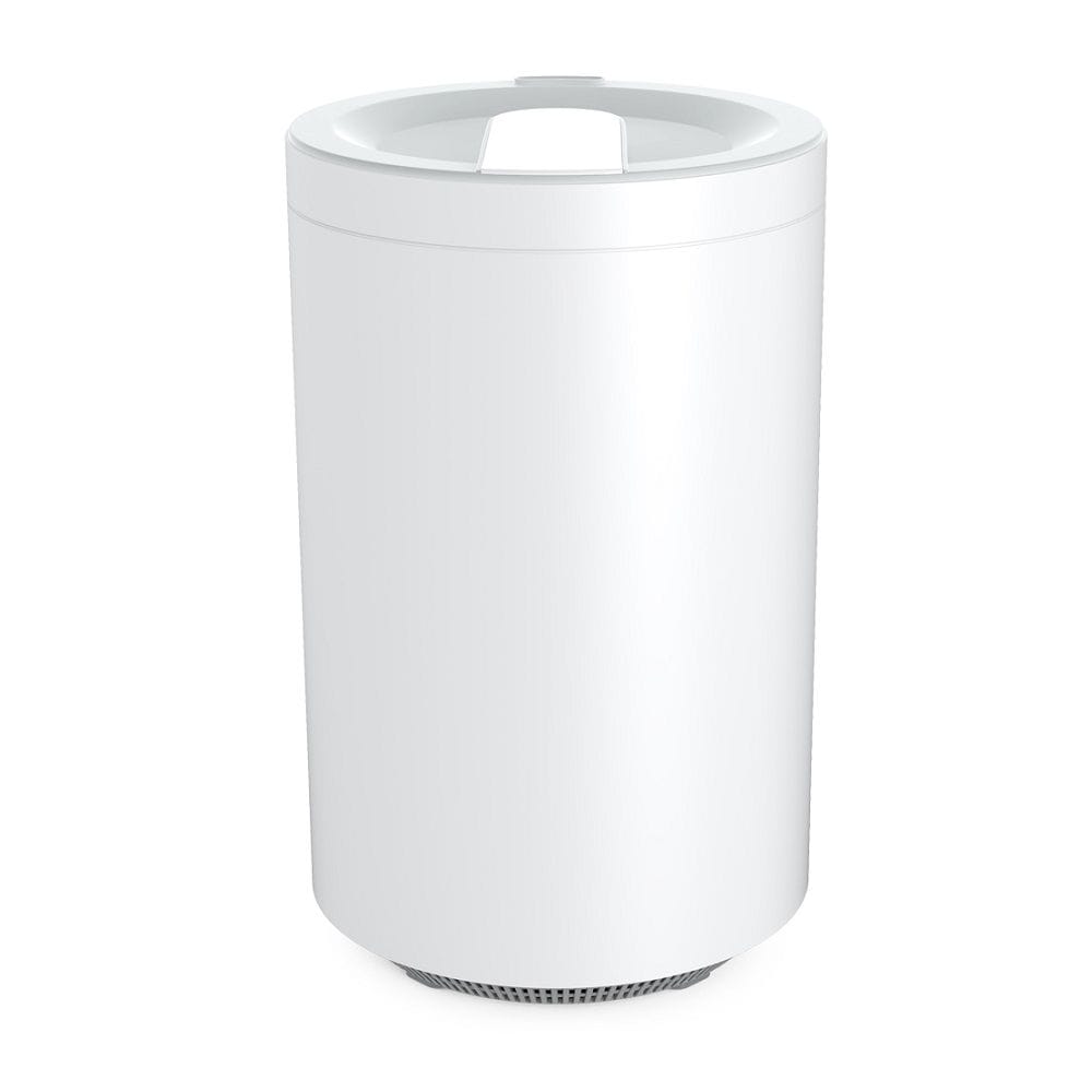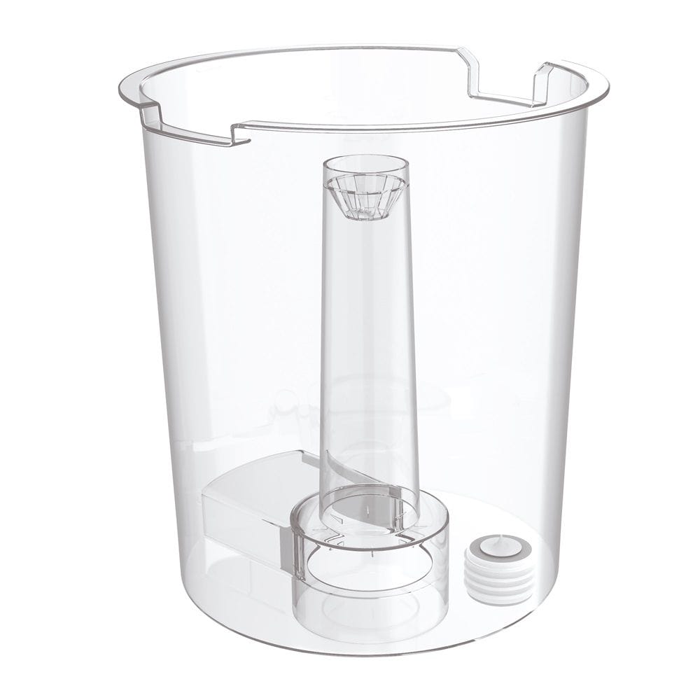 Управление выполнено механически: поворотный регулятор позволяет плавно настраивать интенсивность увлажнения. Корпус — пластиковый, цвет — матовый белый, класс защиты — II, IPX0. Внутренний резервуар цельнолитой конструкции исключает протечки, а сменные угольные фильтры (в комплекте 5 шт.) совместно с УФ‑лампой очищают и обеззараживают воду.