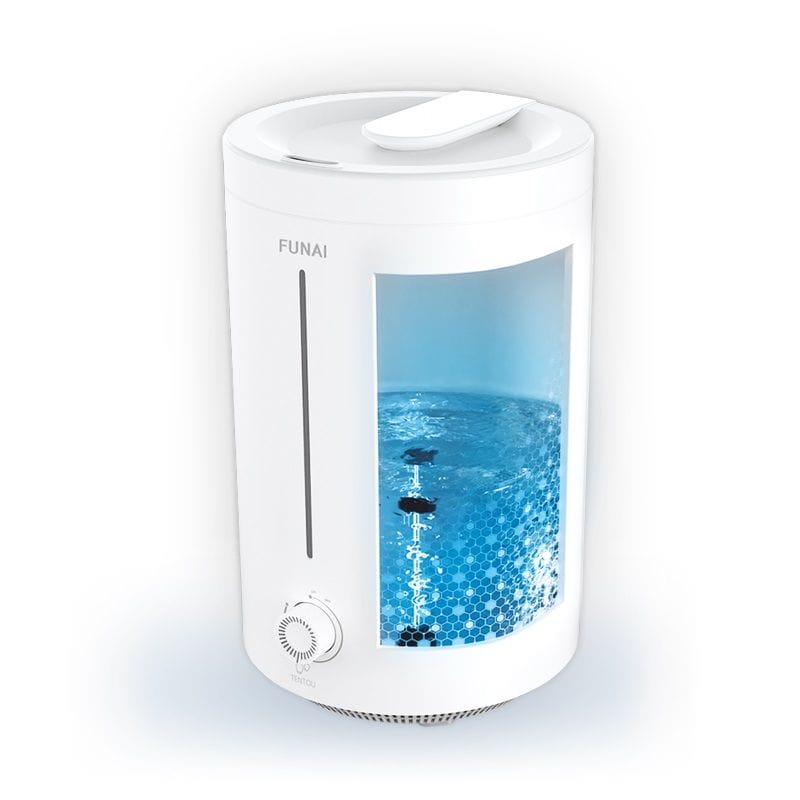 Ультразвуковой увлажнитель Funai USH‑TTM7201WC предназначен для помещений до 25 м². Он оборудован верхним заливом объёмом 3,6 л, что обеспечивает до 14 ч непрерывной работы с производительностью 250 мл/ч. Габариты модели составляют 328 × 200 × 200 мм, а вес — 1,8 кг. Питание — 220 В при максимальной мощности 28 Вт и токе 0,13 А. Уровень шума не превышает 35 дБ, что можно сравнить с тихим офисом.