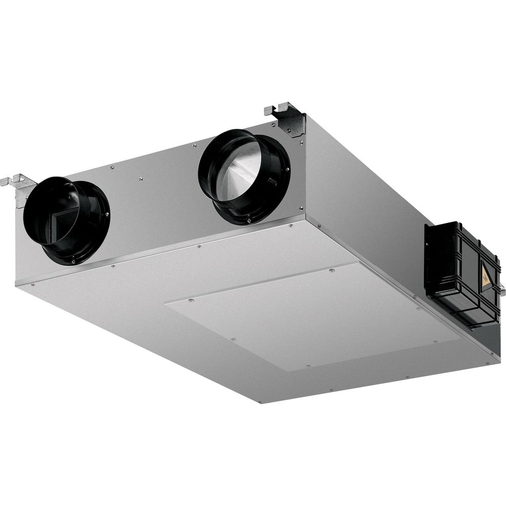 Приточно-вытяжная установка Electrolux Universe ERVX-150 inv представляет собой компактное и энергоэффективное устройство, предназначенное для создания качественного воздухообмена в помещениях с производительностью до 150 м³/час. Корпус установки выполнен из листовой оцинкованной стали с внутренней звуко- и теплоизоляцией из пенополистерола, а также дополнительной наружной изоляцией из вспененного каучука на патрубках подключения воздуховодов, что снижает уровень шума до 31 дБ и минимизирует теплопотери.