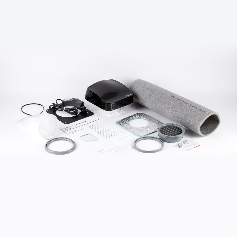Клапан оснащён автоматической заслонкой с несколькими режимами работы: ручным с четырьмя положениями, смарт-режимом с автоматической регулировкой по температуре и автоматическим режимом с подключением датчика качества воздуха VAKIO Atmosphere (контроль температуры, CO₂ и влажности). В комплект входят монтажная пластина с магнитным креплением, теплоизоляция, фильтр F5, наружная вентиляционная решётка, крепёжные элементы и кабель питания длиной 2,5 м. Простота установки и обслуживания, низкое энергопотребление (до 3 Вт) и высокая функциональность делают VAKIO KIV Smart надёжным решением для создания комфортного микроклимата без сквозняков и лишнего шума.