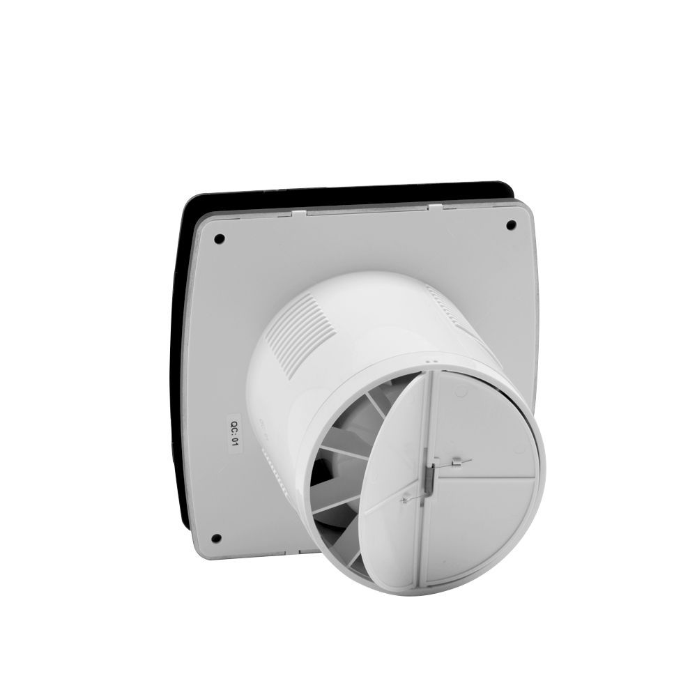 Вытяжной вентилятор VAKIO Smart EF-120 в черном исполнении представляет собой современное устройство для эффективного удаления избыточной влаги и неприятных запахов из помещений с повышенной влажностью. Корпус вентилятора изготовлен из ударостойкого ABS-пластика, что гарантирует надежность и безопасность эксплуатации. Модель оснащена встроенным датчиком влажности с регулируемым порогом срабатывания от 60% до 90%, а также таймером задержки отключения с настройкой времени от 0,5 до 30 минут, что позволяет автоматически поддерживать оптимальный микроклимат и экономить электроэнергию.