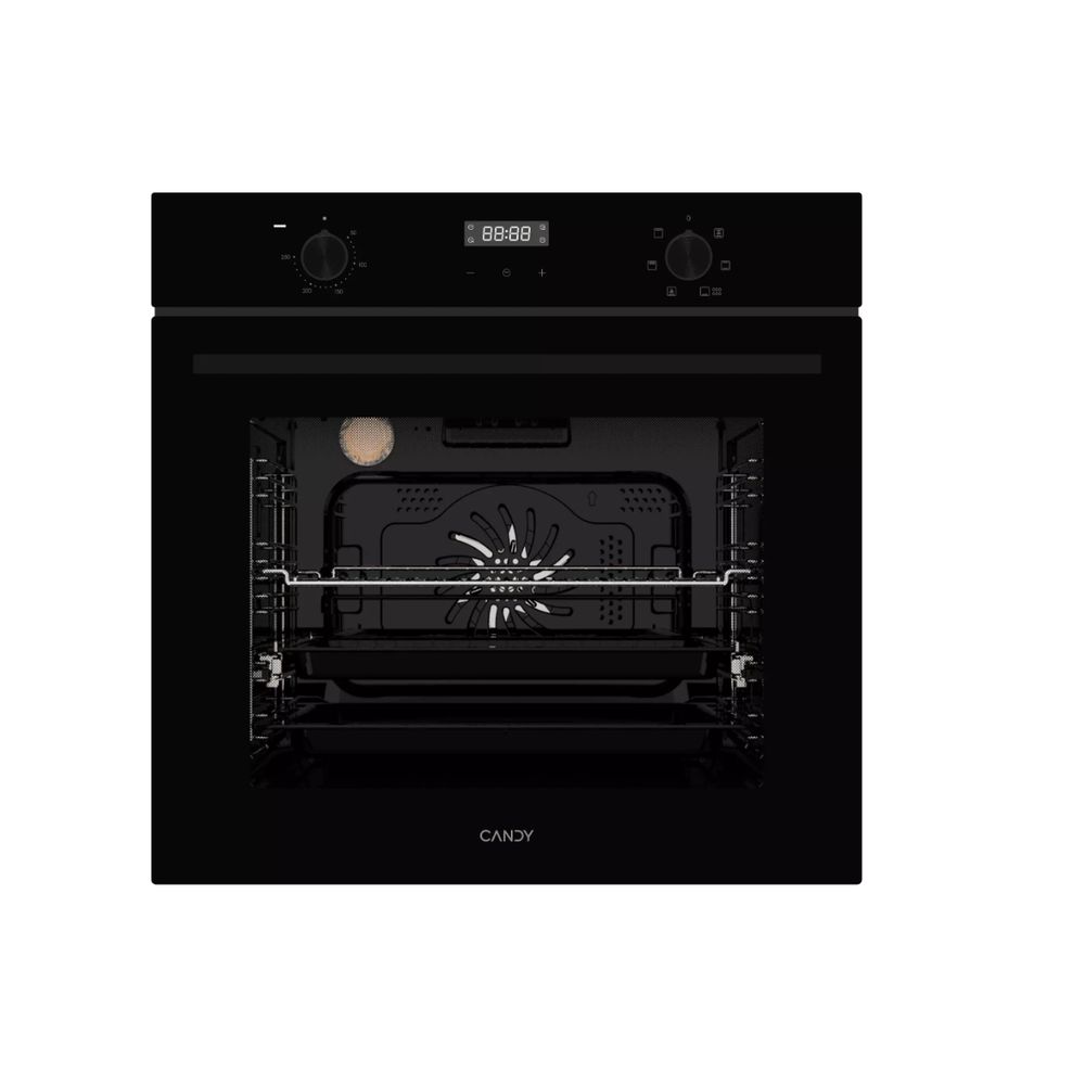 Электрический духовой шкаф Candy COXK06LNBB оборудовано камерой объемом 62 л. Внутренние стены покрыты эмалью, которая легка очищается от загрязнений с помощью пара. Максимальная поддерживаемая температура — 250°C. Открываемая вниз дверца, выполненная из двух слоев стекла, обеспечивает полную герметичность и исключает нагрев наружной части.