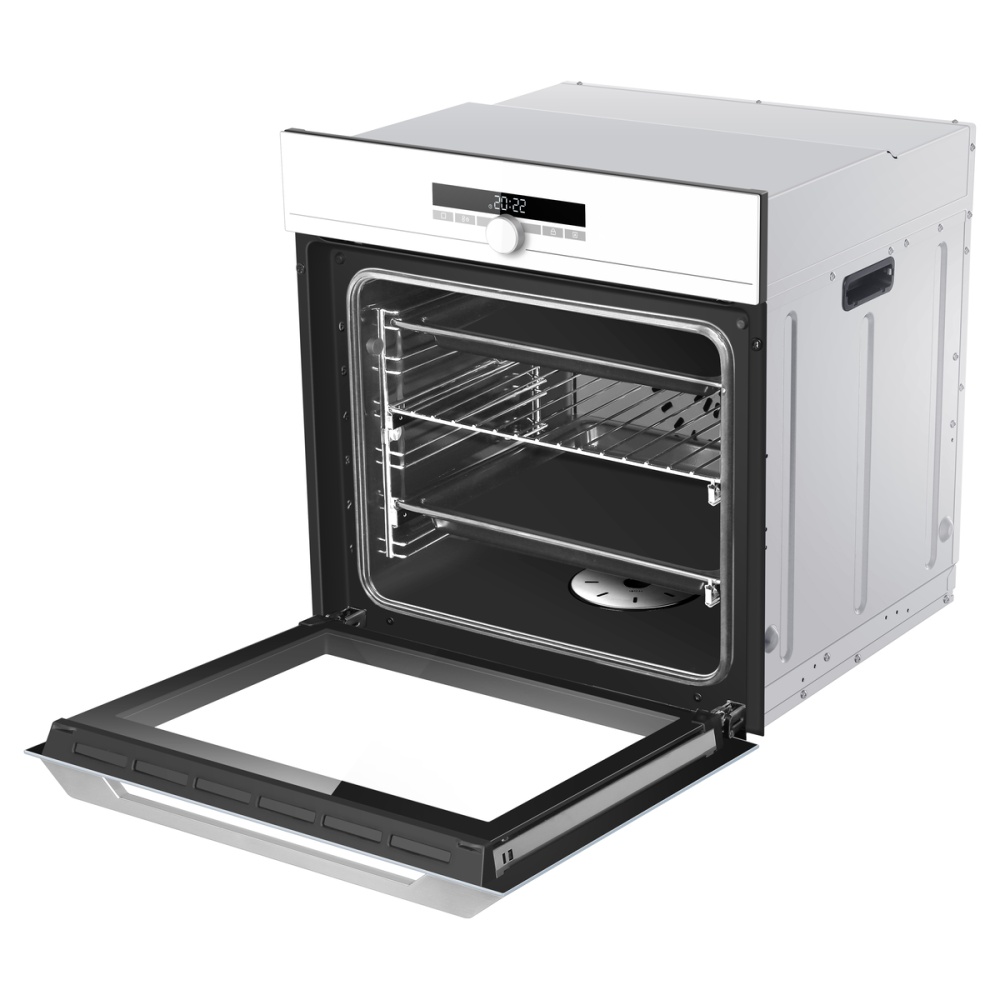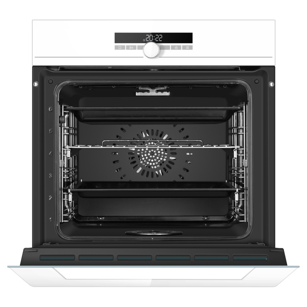 72л, сенсорное управление с поворотным электронным регулятором, парогенератор, 16 режимов+10 автопрограмм, 2D телескопы, каталитическая задняя стенка, плавное закрывание, поддержание темп-ры с точностью до 1 градуса, приготовление под вакуумом, автопрограмма выпечки хлеба с использованием пара, термощуп, 3 стекла, белое стекло