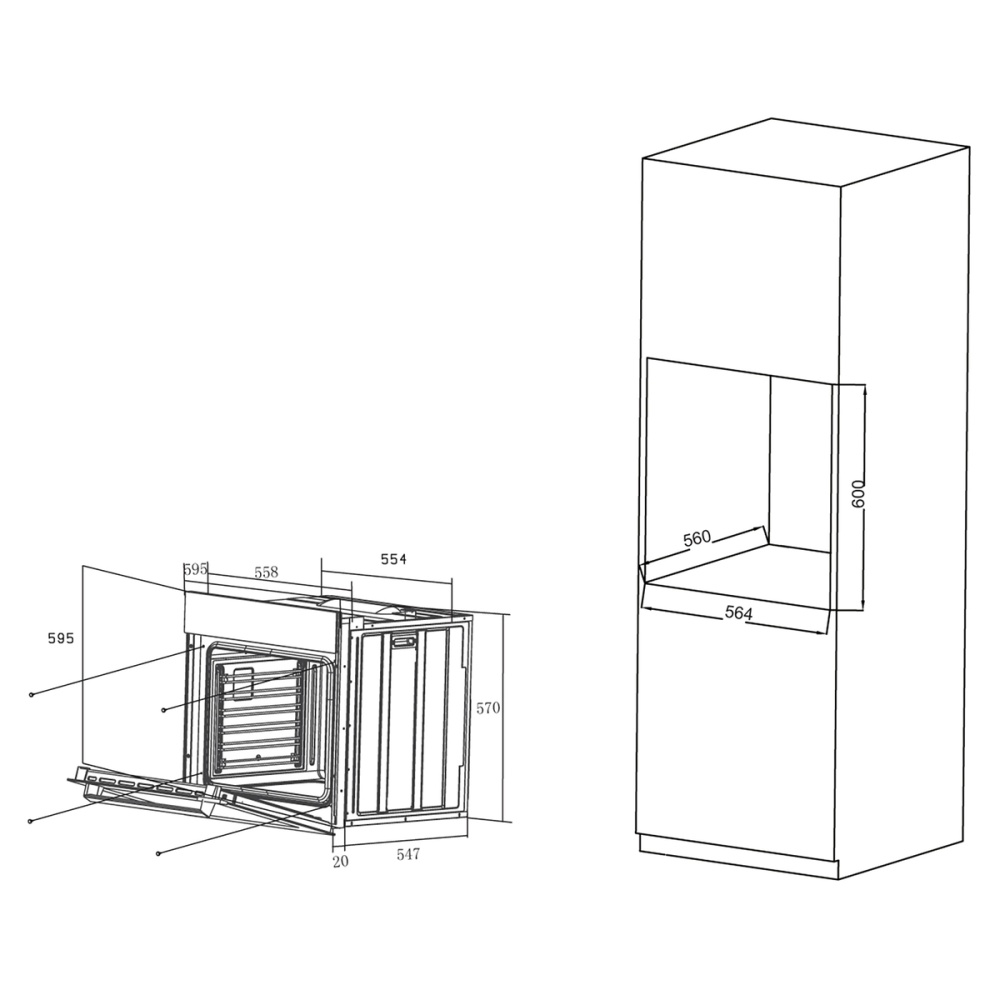 Решетка / Сетевой кабель (без вилки) / Телескопические направляющие / Эмалированный противень