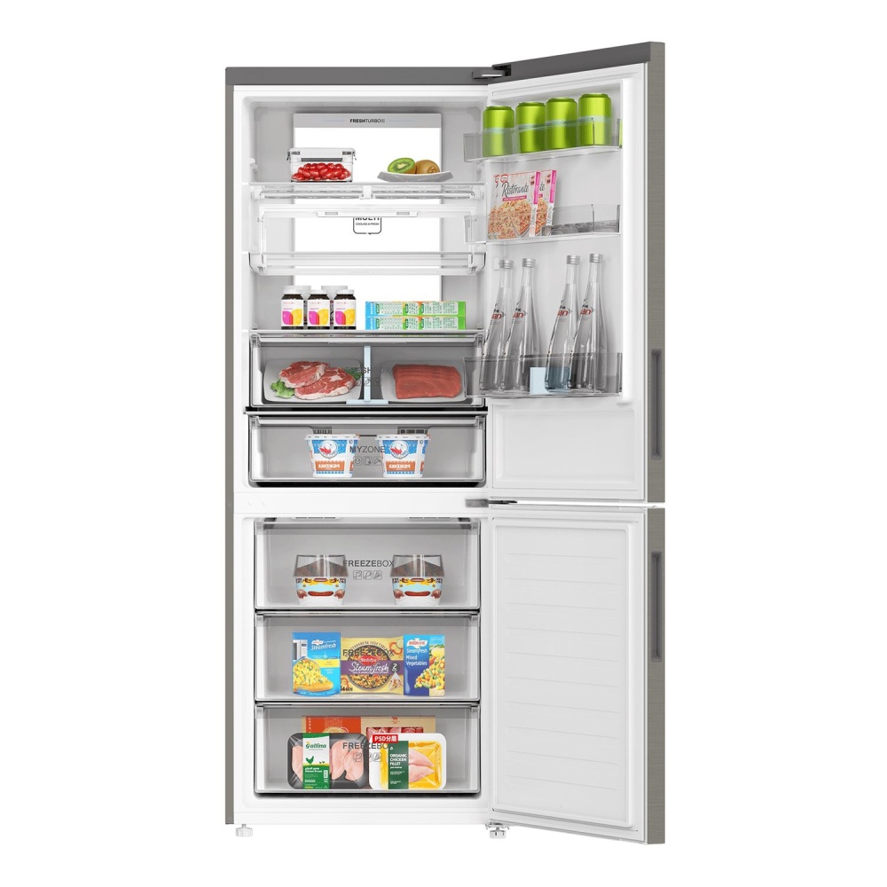 Классический двухкамерный холодильник с технологией Total No Frost — нет наледи в отделениях, никакого ручного размораживания. Отличный обзор — видно все продукты, благодаря светодиодной колонне Tower LED. Специально разработанная двойная складная винная полка обеспечивает максимальное удобство и вариативность хранения. В контейнере 0° Zone качественно сохраняются морепродукты, мясные деликатесы, сыры и молочные продукты, а мембранная технология контроля влажности HCS улучшает условия хранения овощей и фруктов.