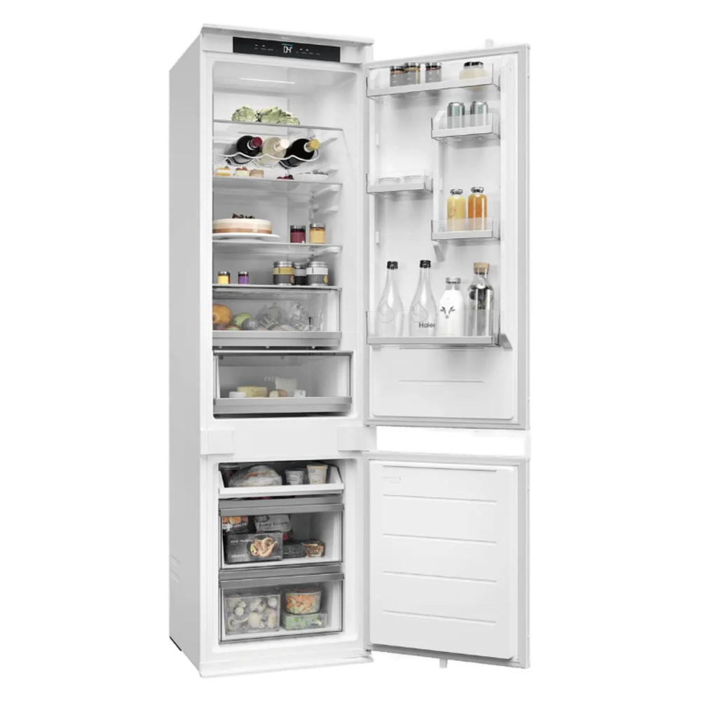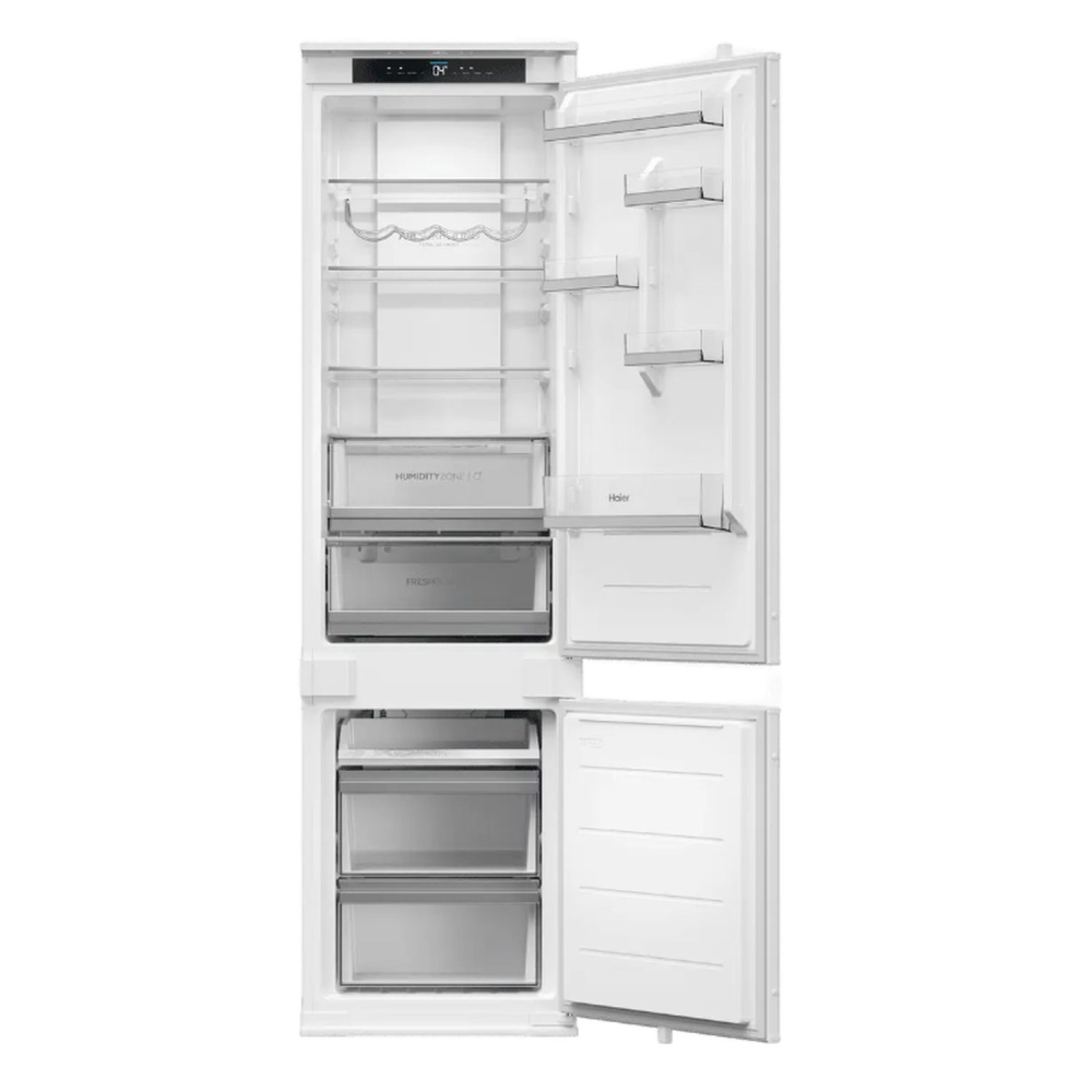 Встраиваемый холодильник HAIER HBCN5190U1 очень вместительный благодаря высоте 193,5 см. Он превосходно сохранит продукты, а также расширит возможность для экспериментов с дизайном кухни. В холодильнике полки из закалённого стекла с изменяемой высотой установки, в нижней части холодильного отделения — выдвижные контейнеры для фруктов и овощей, а также специальная зона Humidity zone для идеального сохранения свежести овощей и фруктов. Металлическая полка для бутылок пригодится для охлаждения напитков. Надёжный инверторный компрессор обеспечивает низкое энергопотребление — класс энергоэффективности А+ и низкий уровень шума 35 дБ.