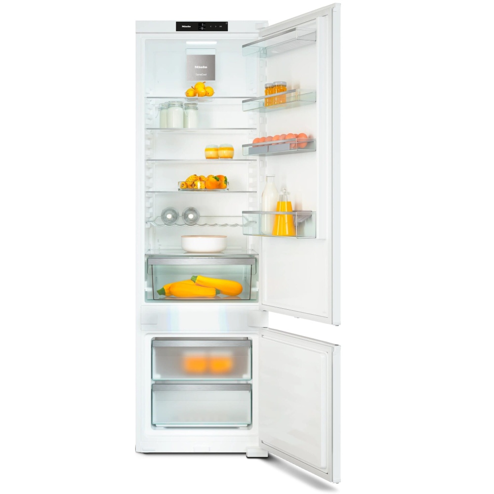 Модель Миле KF 7731 E оснащена динамическим охлаждением DynaCool, вентилятор обеспечивает циркуляцию и распределение холодного воздуха по всей рабочей камере. Два независимых контура DuplexCool позволяют поддерживать и регулировать температуру холодильного и морозильного отделений. Просторный выдвижной ящик с контролем влажности DailyFresh оптимален для хранения овощей и фруктов. LED-подсветка не требует обслуживания. Система VarioRoom поможет разместить даже большие упаковки. Выдвижные ящики и стеклянные полки легко менять местами или извлекать. Увеличенная глубина ComfortSize дает возможность разместить противень для выпечки на нижнем уровне. Дверные полки можно мыть в посудомоечной машине.