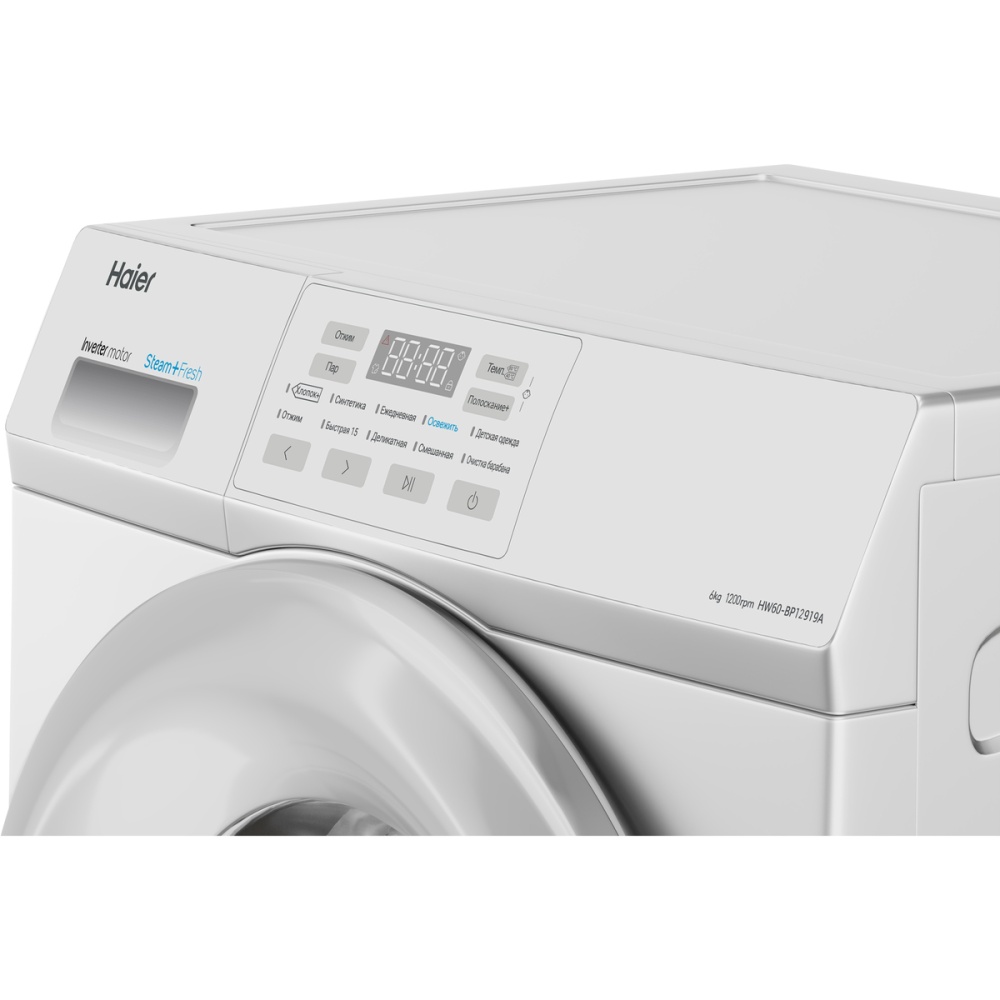 Стиральная машина Haier HW60-BP12919A обладает оптимальным объёмом загрузки 6 кг, что делает её идеальной как для ежедневной, так и для интенсивной стирки. Функция автовзвешивания Auto weighing позволяет оптимизировать время стирки и экономно расходовать воду, а инверторный мотор обеспечивает тихую работу устройства. Управление машинкой интуитивно понятное благодаря удобному дисплею, который отображает время стирки, выбранную программу и дополнительные опции. Легко переключайтесь между режимами стирки, а также регулируйте скорость отжима в диапазоне от 0 до 1200 оборотов в минуту, в зависимости от типа тканей и ваших предпочтений. Стандартный набор программ, включая «Хлопок», «Синтетика», «Смешанные ткани» и «Шерсть», дополнен функцией добавления пара, которая разглаживает волокна ткани, делая одежду более свежей и лёгкой.
