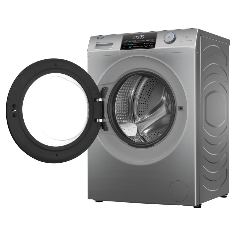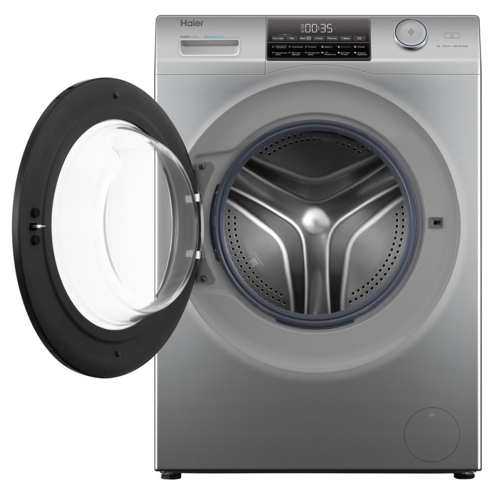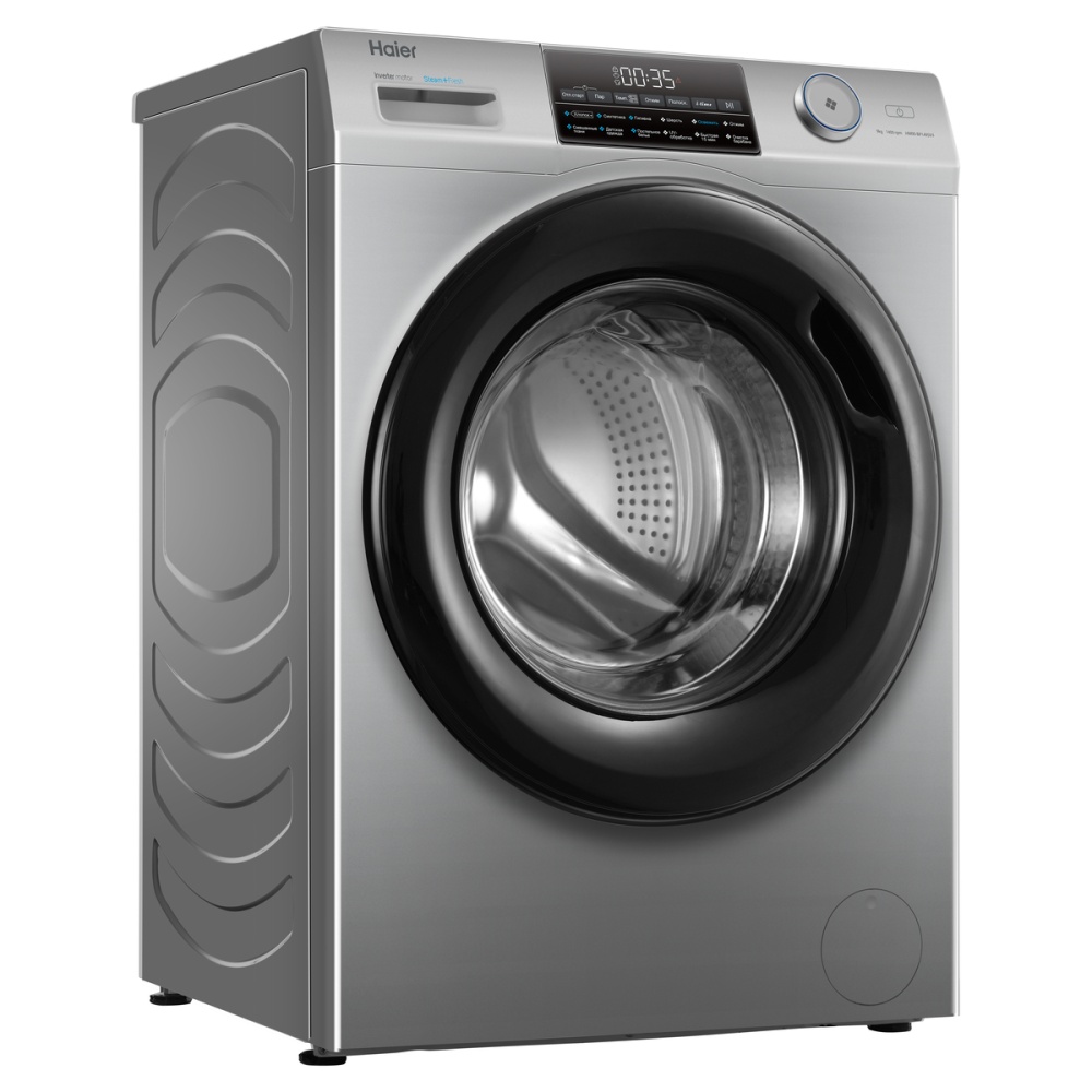 Стиральная машина Haier HW90-BP14959S, рассчитанная на 9 килограммов загрузки, оборудована инверторным двигателем, который гарантирует тихую работу и продолжительный срок службы. Устройство выполнено в стильном серебристом цвете и оснащено удобным дисплеем, на котором отображаются время стирки, выбранные программы и дополнительные функции. Поворотный селектор позволяет легко выбирать нужный режим стирки.