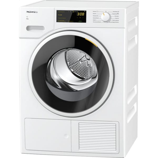 Сушильная машина Miele TWD260WP с интерфейсом на русском языке выпущена в стандартной конфигурации — устанавливается отдельно, поэтому рекомендуем заранее выделить для нее место в квартире. Благодаря классической фронтальной загрузке она привычна и удобна даже для тех, кто не очень разбирается в технике. Вместительность барабана высокая: максимальная загрузка 8 кг. Она удобна в установке и пользовании за счет своих небольших габаритов: высота — 85 см, ширина — 59,6 см, глубина — 64,3 см. Модель оснащена конденсационным типом сушки.