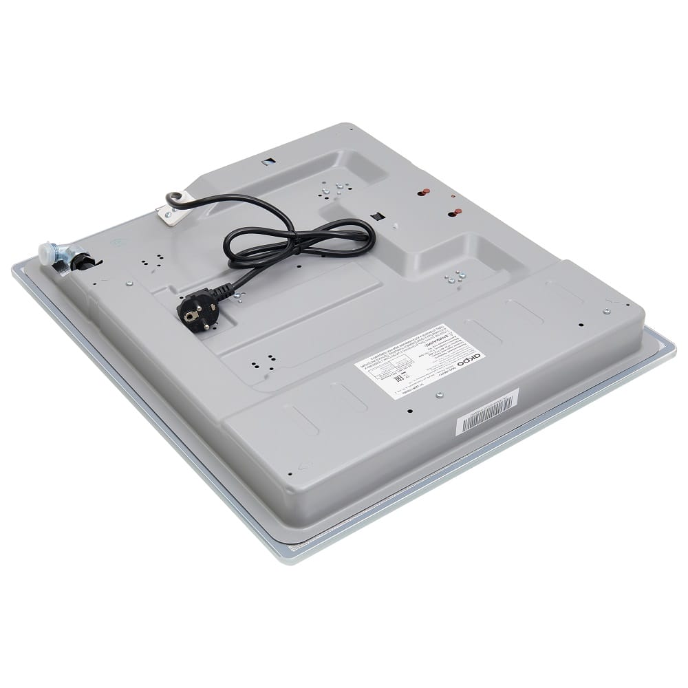 3 газовые конфорки, WOK-конфорка мощностью 3,3 кВт, фронтальные поворотные регуляторы, электроподжиг, газ-контроль каждой конфорки, чугунные решетки, закаленное стекло, цвет - белый