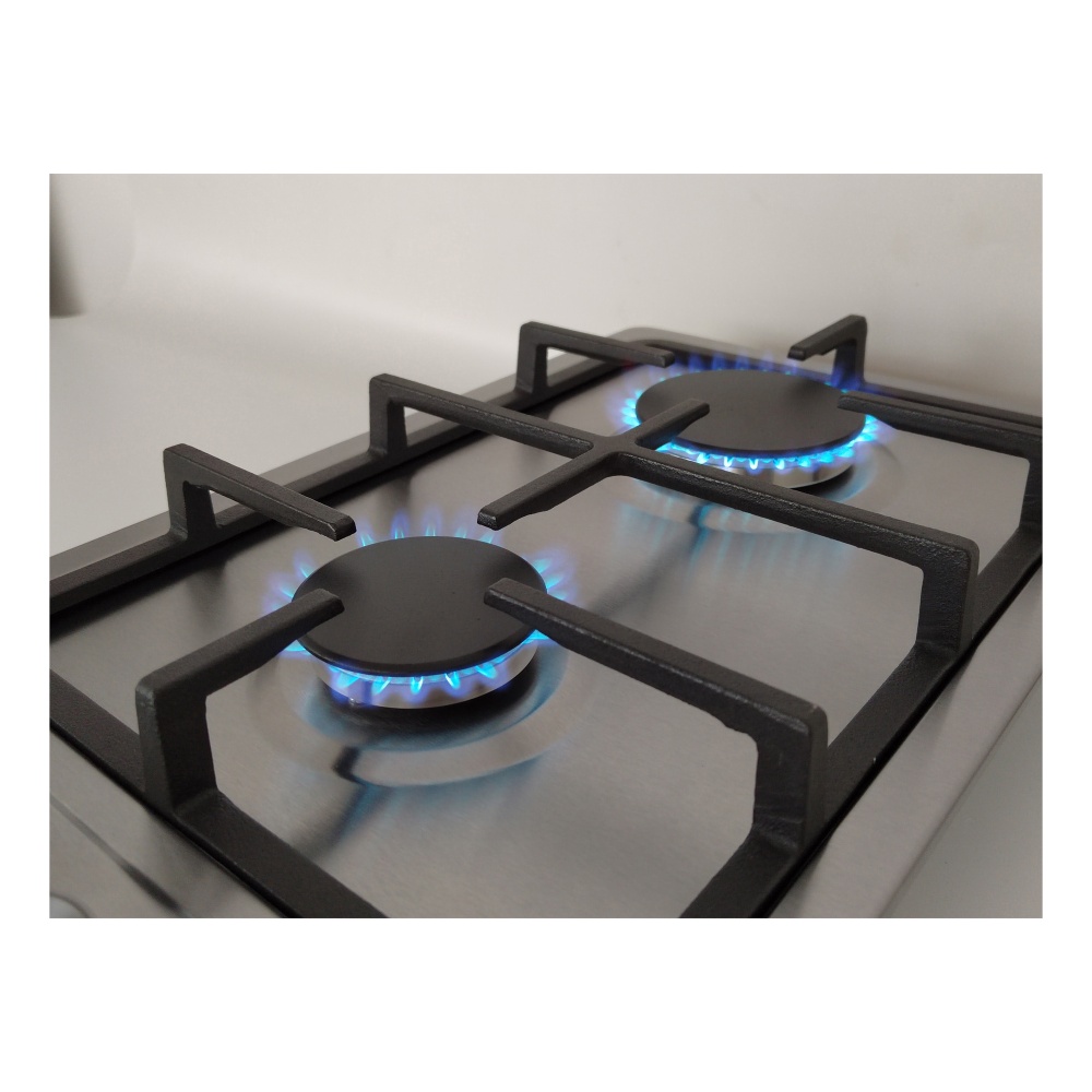 Регулировка мощности пламени в газовой варочной поверхности Candy CHXM32CX выполняется при помощи механических переключателей. Электроподжиг создает искру и активирует конфорки без дополнительных средств розжига. Система «Газ-контроль» исключает утечку топлива в случае внезапного затухания пламени.