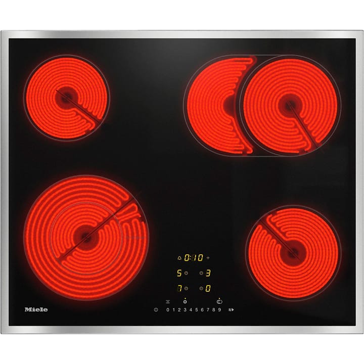 Miele KM 6540 FR — независимая электрическая варочная панель шириной 61.4 см. Имеет 4 зоны нагрева, среди которых зона для запекания и конфорка ExtraSpeed. Благодаря опции автоматика закипания, увеличивающей мощность, а затем уменьшающей ее, можно легко предотвратить подгорание. Блокировка, защитное отключение и индикатор остаточного тепла сделают эксплуатацию максимально безопасной. Поверхность изготовлена из стеклокерамики черного цвета, особенно удобной в очистке. Сильные загрязнения можно удалить при помощи специального скребка, который входит в комплект. Функция Miele@home позволяет управлять варочной панелью с мобильных устройств. При попадании на поверхность посторонних предметов нагрев автоматически прекращается. Панель управления ComfortSelect с цифровой клавиатурой поможет выбрать интенсивность нагрева. Для приготовления различных блюд предусмотрено 9 уровней мощности. Таймер автоматически отключит нагрев по истечении заданного времени. Автоматика закипания — особая функция, которая способствует раз